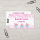 A white background. Decorated with blush pink confetti and cupcakes. Personalise and add your name and text on front. Pink and purple text.