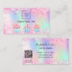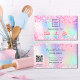 A pink, purple, mint green holographic background. Decorated with blush pink faux glitter dust and cupcakes. Personalise and add your business logo, and/or name,text on front.