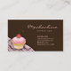 Chocolate brown and pink elegant trendy business card with cute cupcake great for any coffee shop or bakery or caterer or event planner.