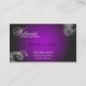 To perfectly align your text, press "CUSTOMIZE IT" under the image, click on the newly loaded image of the business card to go to design view. Use the text boxes on your right to highlight the text that you want to edit, then use the arrows to move it or click on the lettering on the image of your design and click and drag your mouse to move it. If you require assistance, please contact pamsdesigns@live.ca. ©2012 Pam's Designs. This elegant, professional, and stylish purple, black and white glowing smoky monogram script lettering with swirled floral flourishes and sparkle over a spotlight bakery business card provides a classy, professional look for your bakery business. This elegant monogram business card is can be personalised to meet your business needs. If you would like to see your business name written with this fancy script font, please contact us at pamsdesigns@live.ca.