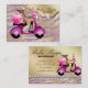 Bakery Cupcake Business Card with fun Scooter Woman and zebra glitter print.