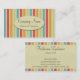 These colourful business cards were made with a bakery or pastry chef in mind! They featured a textured background of pink, cream, blue, orange & green stripes. A cream circle contains room for your company name & a tagline (or your website). The back contains room for your name, job title and contact details.