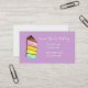 A cute vintage retro style business card suitable for a bakery or cake making business. This whimsical design shows delicious looking rainbow cake slice original watercolor art illustration against a modern lavendar purple background. The background colour can be changed to suit your taste. This business card is fully customisable to include your own personal details.