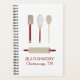 Illustration of spatula, whisk, wooden spoon, and rolling pin with red colour scheme and custom text.