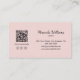 Modern Bakery Logo QR Social Media Icons Pink Business Card. Elevate your homemade bakery brand with this stylish and functional business card. Featuring a soft pink background, it allows you to create your own bakery’s logo, add a QR code for easy access to your website or menu, and customise social media icons to match your platforms. Perfect for small bakery owners, home-based bakers, and pastry chefs looking to leave a lasting impression. Personalise with your details to create a unique and professional look.