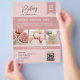 Promote your bakery with style and sweetness! This customisable flyer is perfect for showcasing your cupcakes, macarons, cakes, and more. Add your own three photos to highlight bestsellers or signature treats, and personalise the text with your initials, name, contact info, and tagline. A dedicated section for a QR code makes it easy for customers to scan and order or follow you online. Ideal for bakeries, pastry chefs, cake artists, and dessert shops looking to share their brand in a beautiful, professional way.