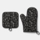 Bakery Kitchen Symbols Pattern Black Oven Mitt & Pot Holder Set