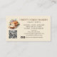 Create a lasting impression with this modern and trendy bread bakery business card design. This unique card features a watercolor depiction of assorted bread on a rustic wooden board, complemented by elegant flowers against a cream background. Your company name stands out in trendy capital lettering on the front, adding a touch of sophistication. Personalise further by adding your QR code, contact details, business description, and social media links on the back. Whether you're a home baker, bakery owner, entrepreneur baker, chef, or caterer, this stylish business card is perfect for showcasing your passion for baking and attracting new clients.