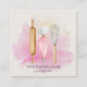 An elegant watercolor of baker's utensils, on a pink watercolor wash with a tiny spray of gold glitter stars and a deep silver pink typeface font contrasted with your name in a deep silver pink trendy stylish script. This design is perfect for a pastry chef, baker, dessert caterer or bakery food truck, If you are interested in other matching products with this design please contact me through the "message" link in my shop.