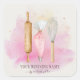 An elegant watercolor of baker's utensils, on a pink watercolor wash with a tiny spray of gold glitter stars and a deep silver pink typeface font contrasted with your name in a deep silver pink trendy stylish script. Menu and price list. This design is perfect for a pastry chef, baker, dessert caterer or bakery food truck, If you are interested in other matching products with this design please contact me through the "message" link in my shop.