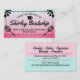 Your choice of colour scheme throughout on this cute business card for a home baking or bakery business, pastry chef, wedding cakes, cookies, or cupcakes biz featuring measuring spoons, beaters and measuring cup.