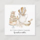 A modern and whimsical baker, bakery or pastry chef business card featuring a watercolor painting of a cake, bakers tools and ingredients. Personalise your name in a modern script signature type. Add your contact information and social media information to the back of the card. A trending illustrative style artisan business card for your dessert catering or bakery store business.