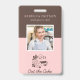 Bakery Pastry Chef Employee Photo ID Badge. Personalise this custom design with your own employee photo, name, and business details. This design features an elegant cake logo against a pink background. Perfect for bakeries, cake and pastry shops, cafes, caterers, restaurants or any food service related business.