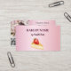 A pink gradient background. Decorated with a cheesecake with a red strawberry. Personalise and add your name and text on front.