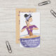 Pretty woman baker or cook business cards for baking, bakery or pastry chef. She wears a purple shirt and headscarf, mixing a giant bowl of batter or dough with giant wooden spoon. Also makes a great gift tag or product label for your cakes, pies, cookies, breads and other baked goods.