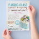 A bright and attractive flyer for instructors running a baking or cake decorating class or course. Flyer design includes light background touches of robin blue and purple, images of beautiful cakes and the ability to edit the title, description, date, time, price, location, and registration information. Editable information to write about the instructor on the back or change it to whatever text is important to communicate.