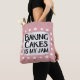 "Baking Cakes Is My Jam" is a cute text design in pink with black text, along with a white accent shape and white textured whimsical dots surrounding it.