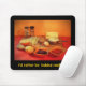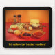 This mousepad is a baker''s delight! All the ingredients are ready to put together for a delectable pastry. Attractively arranged are: almonds, sugar, flour, a lemon, an orange, an egg, butter, cinnamon, cardamom apricot preserves and raspberry jam. The background is a luminous orange and gold. The text reads: I'd rather be baking cookies! It can be customised or removed.
