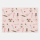 A cute pink and brown themed baking and cooking utensils pattern. Bakery cooking themed illustrations include a rolling pin, whisk, piping bag, desserts, spatulas, spoons and more.