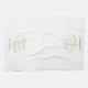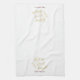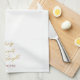 Custom-designed decorative kitchen hand towel for the holiday season featuring "baking spirits bright" gold calligraphy with personalised family name.