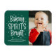 Send holiday cheer to friends and family with our red Baking Spirits Bright holiday photo magnet. The cute baking-themed holiday magnet features white dots (or snow) and stars accenting the phrase "Baking Spirits Bright" that is displayed in white, hand-lettered text against a green background. Personalise the magnet by adding your last name inside of the the rolling pin frame and a photo. Designed to coordinate with our Baking Spirits Bright holiday collection.