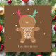 Baking Spirits Bright Reindeer Gingerbread Cookie Square Sticker. A cute gingerbread cookie wearing a green and red reindeer hat. Adorable! Customise to your event specifics.