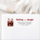 Spread holiday cheer with these festive return address labels, showcasing a sweet family photo nestled within a charming red gift bow. The heartwarming "Baking Things Bright" message in bold red text adds a playful and festive element. These labels are perfect for all your Christmas mailings, from cards to packages, ensuring your correspondence is as special as your holiday greetings. Let these adorable labels convey the joy and warmth of your holiday season with every delivery.