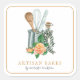 Modern watercolor frame peach floral and plaid baker, bakery, pastry chef product labels in pretty watercolors with baking utensils: frosting spreader knife, whisk and wooden spoon. Pink, green, burnt sienna and black and white plaid. For a home baker, dessert caterer, pastry chef or bakery. The title font is a rustic antique typeface from the 1700's still admired and in use today; an earthy and textured style font.