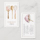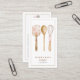 Elegant watercolor illustration baker, bakery, dessert chef caterer business card with whisk, spoon and spatula utensils. Modern elegance.