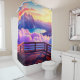 This shower curtain has a beautiful balcony view of the clouds and mountains on it.