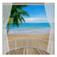 Enjoy each day at the sight of having a balcony with a beach ocean view.With thanks to PEXELS for free commercial use of photos of a palm tree and an ocean scene, Holbrook Art used digital oil painting techniques to modify them and painted see through curtains and a balcony to create a realistic looking front view of the beach and ocean as seen from a resort bedroom.