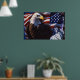 Bald Eagle 4th Of July poster Comes with a beautiful Bald Eagle sitting and looking at the Statue of Liberty and a American flag behind him .this is a beautiful photo on this poster