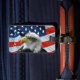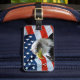 Patriotic Monogrammed Luggage Tag with close up photo of Bald Eagle in front of The American Flag