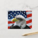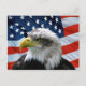 Patriotic postcard has close up photo of Bald Eagle in front of the American Flag
