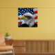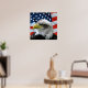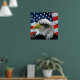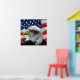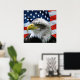 Patriotic Poster with Beautiful close up photo of Bald Eagle in front of American Flag.