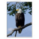 A mature Bald Eagle perched high in a Fir Tree watching over the ocean for food.