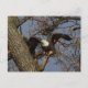 An adult bald eagle is prepaired to leap into the air from a tree limb.