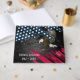 Landing a bald eagle on an American flag graphic on a black slate rock background for a military tribute for a veteran.