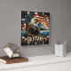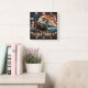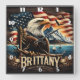 Bald Eagle Perched by Mountains and American Flag Square Wall Clock