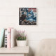 Bald Eagle Perched With American Flag Backdrop Square Wall Clock