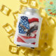 This can cooler has a design featuring a bald eagle and an American flag in the background. Using this can cooler would be a great way to show your patriotism.