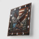 Bald Eagle With American Flag and Mountains Square Wall Clock