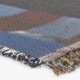 A quality printed throw has its advantages. This is a much finer weave throw than its loopier cousins, and though lighter, it is worth the investment for custom room accessorizing. The back is much prettier than the typical brown, and the fringe on the long sides very vivid, the selvage nicely done. Before photographing, I washed the throw in cold water, delicate, with a thicker woven throw the same size. On tumble dry low, this throw was dry in half the time as the other. This is a very practical quality if you use throws for furniture covers or to wrap up in frequently. The sleekness of the fabric makes it a great layer for accenting or protecting without the feeling of sitting on too much stuff. Perfect for napping or when you feel a light chill coming on. The color printing is beautiful and on this fabric, matched the design and color of my Photoshop image. This is an advantage for blending room fabrics and colors. The fringe on the short sides prints the colors from the design image and therefore varies from the side fringe. I streaked a white fractal line through the plaid pattern to give the illusion of weaving. This printed as crisp as an illusory thread, and put some white in the short side fringe, showing another advantage of print vs loomed- for artistic purposes, line lines, detail, and color integrity can be planned and preserved. My loomed throws have color limitations and more of a needlepoint texture. Print throws reproduce an exact image. The throw felt a little stiff straight out of the package, but this went away in the first delicate wash. Of course I searched the wash water for ink or bleeding and there was none.