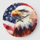 Bald Eagle with United States of America flag Large Clock