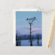 This post card has a photograph of two bald eagles sitting on top of a tree with a pink sky from a sunset in the background.