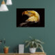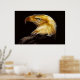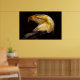 Featuring a breath taking view of a Bald Eagles with power glowing out of it and a black back ground.this is a beautiful photo on this poster