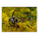 This note card features Dolichovespula maculata, a North American insect commonly called the bald-faced hornet (or white-faced hornet or white-tailed hornet). Its well-known features include its hanging paper nests and the females' habit of defending them with repeated stings. It belongs to the genus of wasps called yellowjackets. The striking black and white markings stand out against the lovely yellow goldenrod flowers. Up close, this scary looking bug seems to have arrived from another planet!