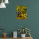 This poster features Dolichovespula maculata,  a North American insect commonly called the bald-faced hornet (or white-faced hornet or white-tailed hornet). Its well-known features include its hanging paper nests and the females' habit of defending them with repeated stings.  It belongs to the genus of wasps called yellowjackets.  The striking black and white markings stand out against the lovely yellow goldenrod flowers.  Up close, this scary looking bug seems to have arrived from another planet!