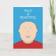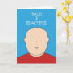 A cartoon of a smiling man with no hair, accompanied by the words 'Bald is beautiful'.