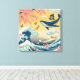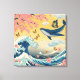 Uma ilustração vibrante que mistura elementos tradicionais japoneses com fantasia: uma majestosa baleia azul flutua pelo céu dourado, rodeada por borboletas, pétalas de sakura e ondas inspiradas em Hokusai. A composição cria um cenário onírico, poético e cheio de movimento — perfeito para quem ama arte japonesa, natureza e surrealismo.